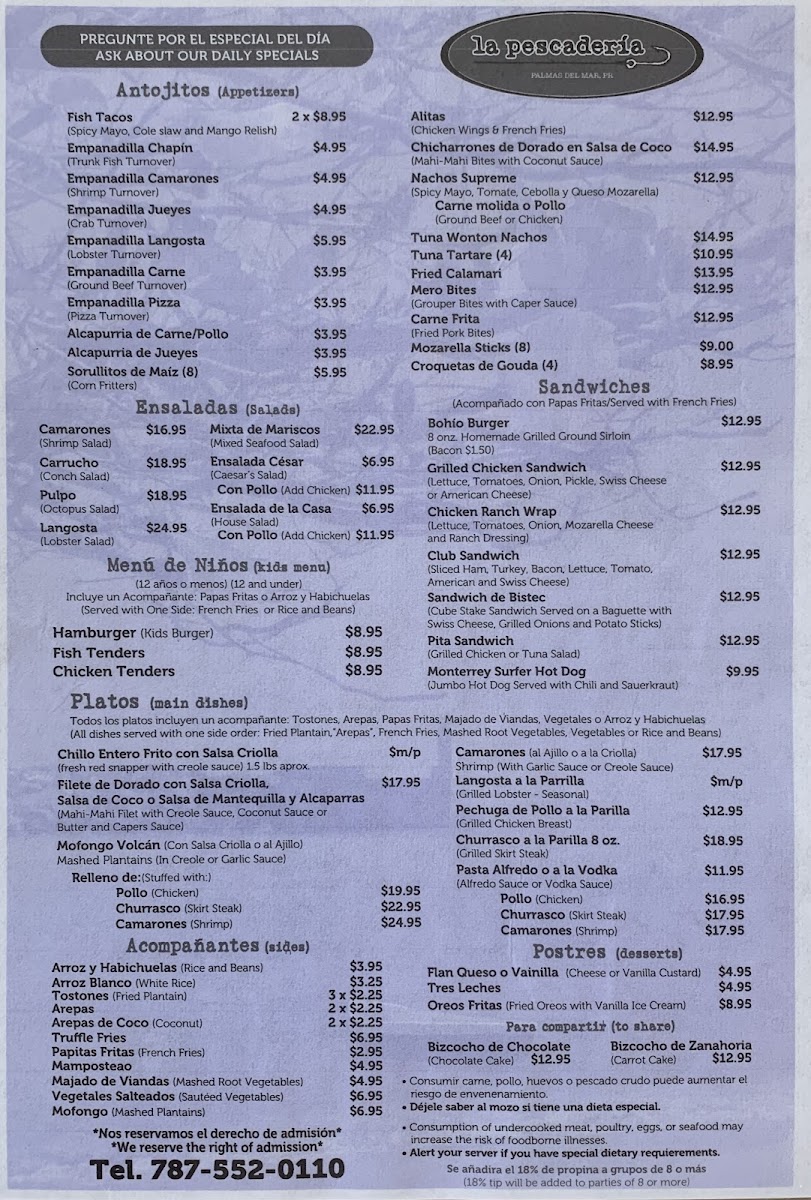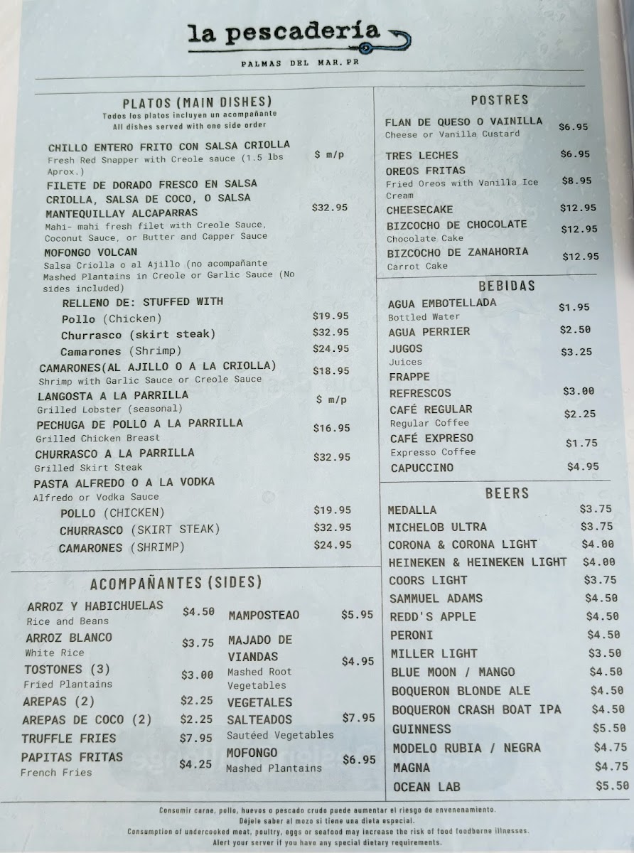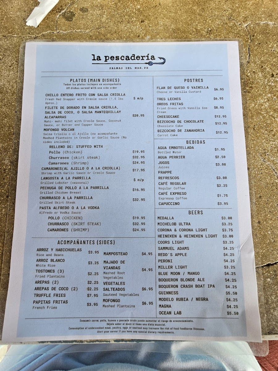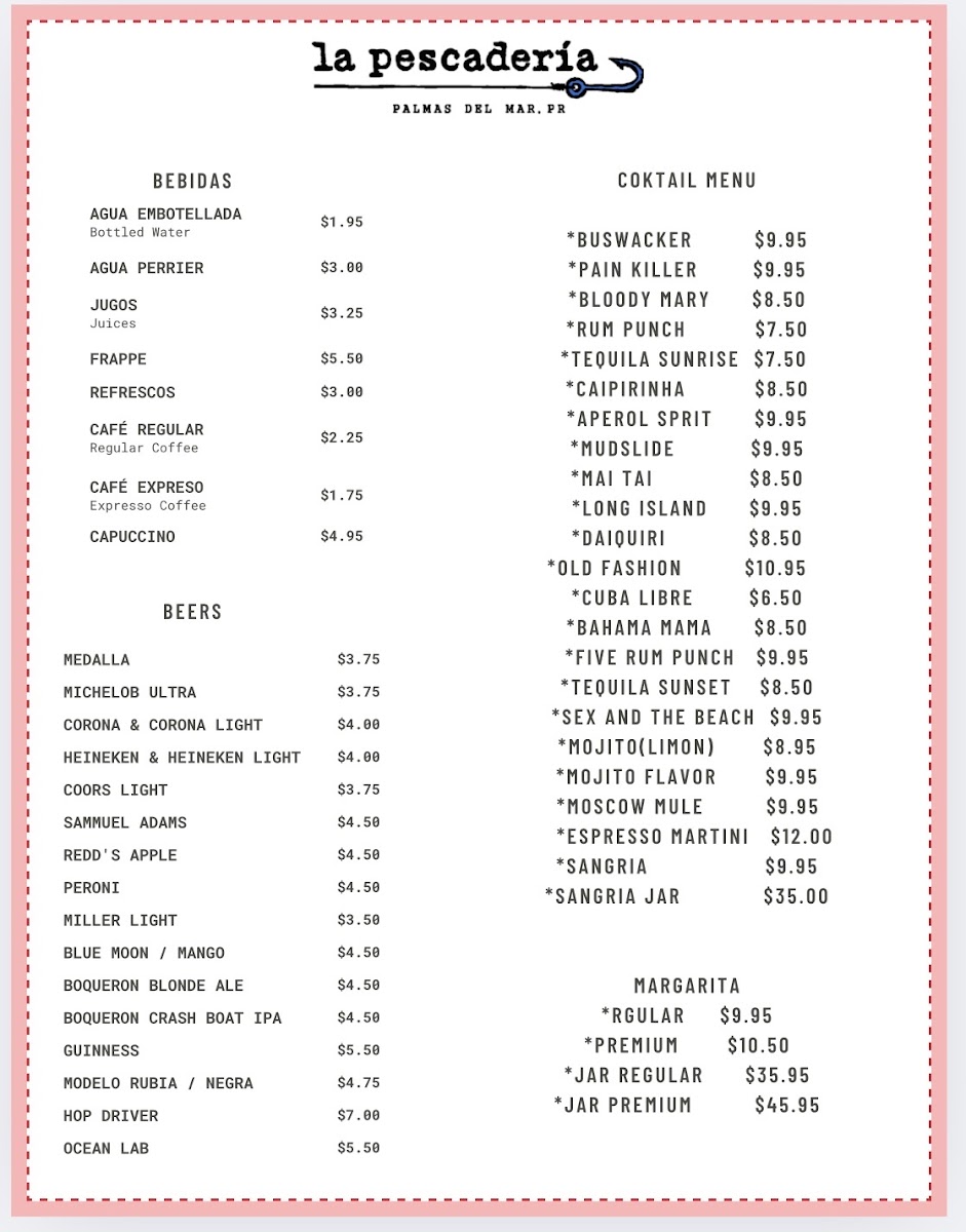The menu at La Pescadería offers a relaxed selection of seafood and local Puerto Rican flavors, perfect for those looking to enjoy a casual yet thoughtfully prepared meal by the water. You’ll find a variety of fresh fish dishes alongside familiar comfort options, all presented with an emphasis on simple, satisfying tastes.