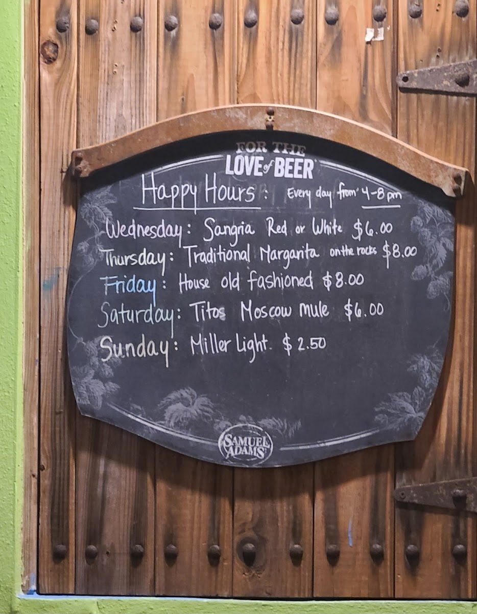 Guests often come for light bites such as fish tacos or spicy crab tacos, ideal for a midday catch-up or an early evening snack. Heartier entrées like the whole fried red snapper with salsa criolla or grilled lobster in butter fit well into a leisurely dinner, especially when paired with a refreshing sangría or classic margarita. The menu also includes some traditional side dishes and desserts, such as mofongo with garlic shrimp and vanilla flan, adding a homely touch to the experience.